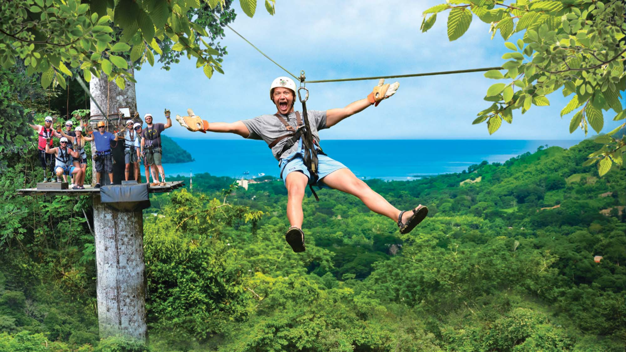 You will first start with the Action Packed zipline, this adventure starts on a 15-minute ride aboard our specially designed tractor. Once we reach the top of the mountain, our bilingual guides will explain -step by step- all the safety procedures you must follow to enjoy your Zip Line adventure, we then descend to the bottom via a series of zip lines, including 12 platforms and 10 cables with a total cable distance of 3.5 kilometers, among them longest cable in the area (2400 ft.) at the end we will greet you with fresh tropical fruits and cool water.